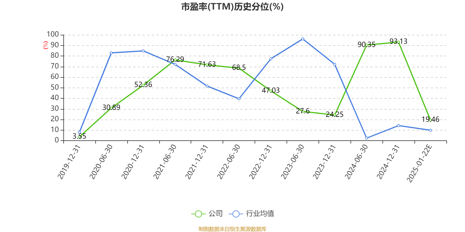 以本次披露业绩预告均值计算,公司近年市盈率(TTM)图如下所示: